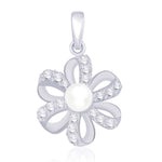 A truly beautiful and exquisite design, this pendant is a class apart from everything.CZ Floral Design in the middle of Natural Pearl Pendant for women .Rhodium Finish.