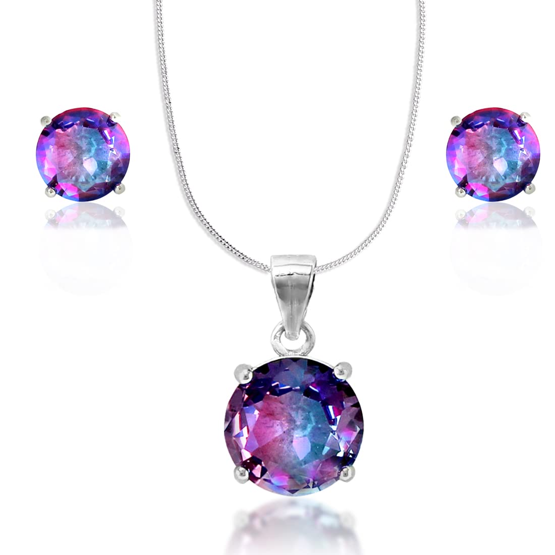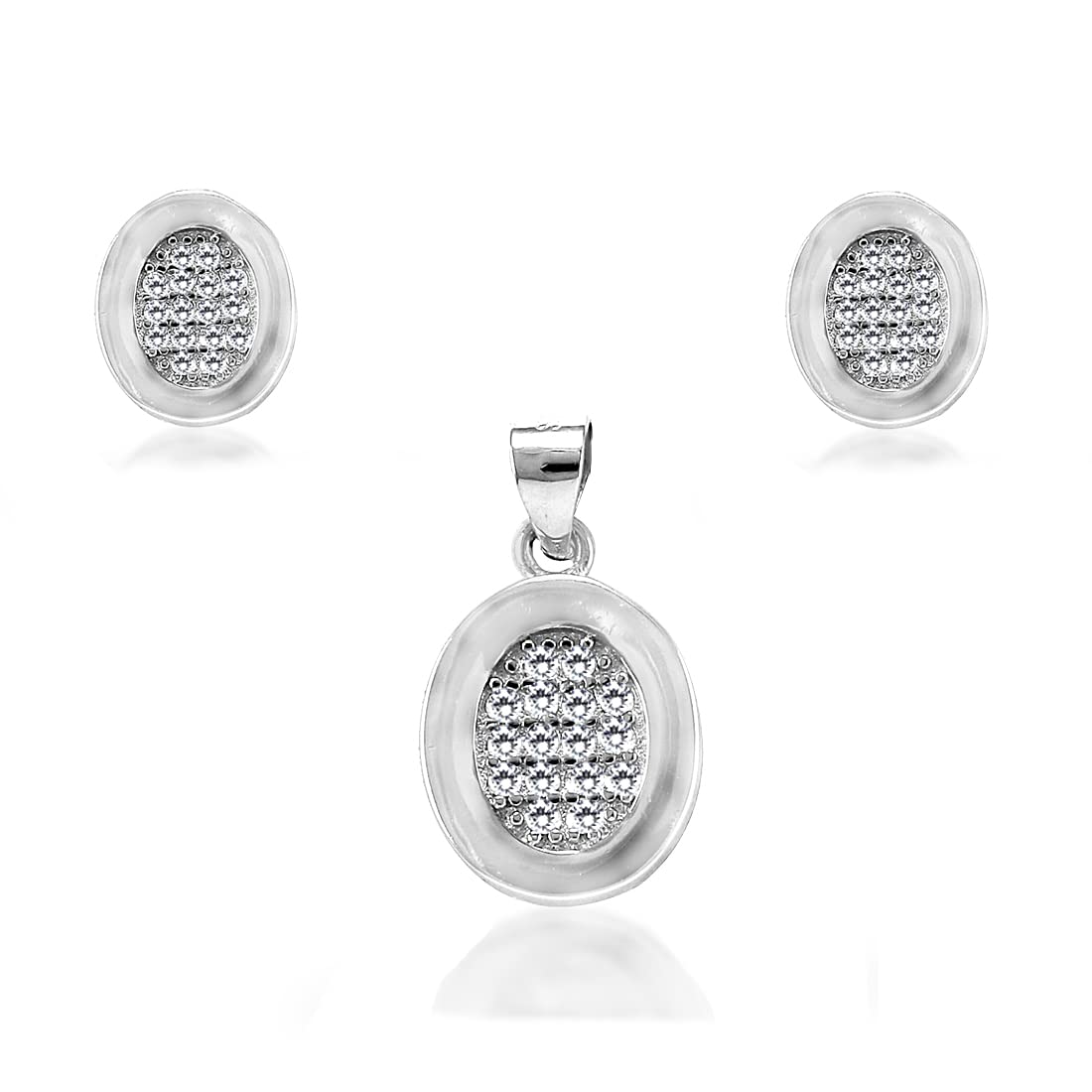 Taraash 925 Sterling Cz Pendant Set | Silver Pendant and Earrings Set | Silver Pendant Set For Women